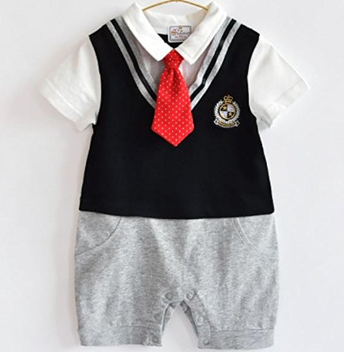 【ママセレクト】現役ママが選ぶ子供に着せたいちっちゃなフォーマルスーツ ネクタイ取り外し可能 半袖 ロンパース 薄手で涼しい 軽い 冠婚葬祭にも