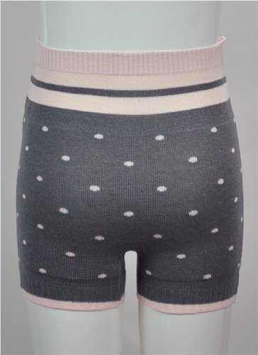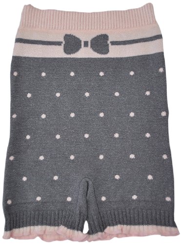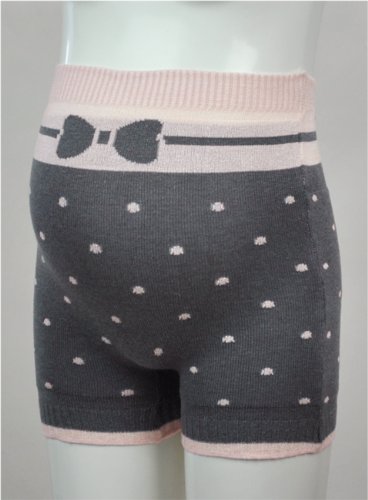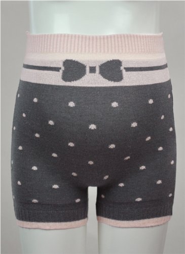 マミールナ リボン&ドット柄あったかパンツ M-L チャコール×ピンク ニット #63087