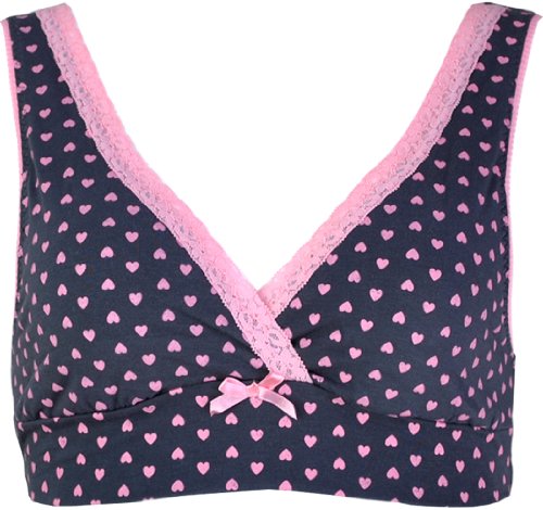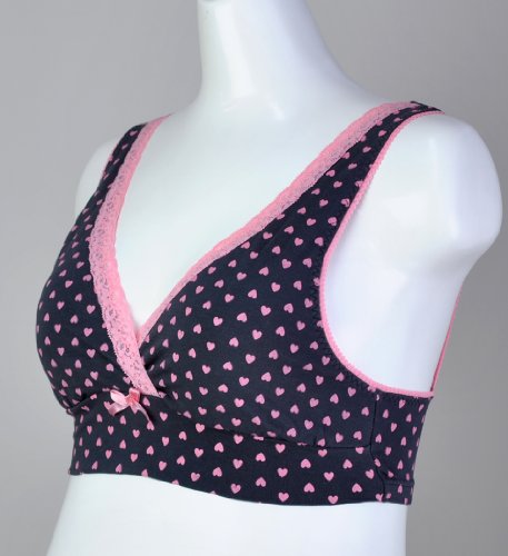 マミールナ ハート柄ハーフトップ LL チャコール×ピンク ベア天竺 #71063
