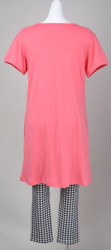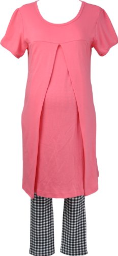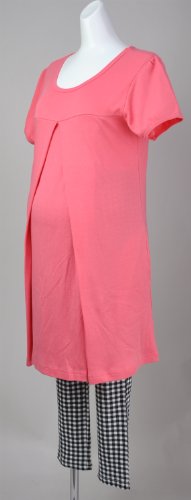 マミールナ 授乳口付き半袖ワンピ&チェックレギンス M~L ピンク スムース #911061