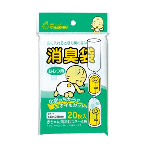 速効性・持続性に優れ、低温でも脱臭効果抜群!おむつ以外に、生ゴミやペットシートなどにもご使用いただけます。【特長】・消臭成分を練り込んだポリ袋が、悪臭をすばやくキャッチして化学的に分解します。・キッチンの生ゴミ処理だけでなく、紙おむつ、ペットのフンなど いろいろな用途にお使いいただけます。・アンモニア(尿、汗)、トリメチルアミン(腐敗魚)、硫化水素(腐敗卵)などの悪臭を 化学反応により分解・消臭するポリエチレン製品です。(無機系脱臭剤配合)・速効性、持続性にすぐれ、低温でも脱臭効果抜群です。・食品包装材料として使用が認められた、極めて安全性の高いポリエチレンです。