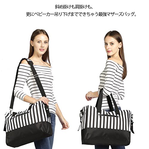 • 肩掛けも斜め掛けもベビーカー取り付けもできるおしゃれなママバッグです。