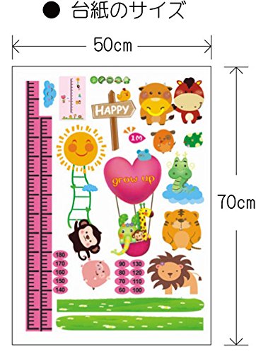 ●台紙のサイズは50cm×70cm。貼った時のサイズは約90cm×160cmになります。 目盛りは60cmから180cmまであります。(ステッカーは必要に応じてカットし、長さを調節してご使用いただけます)
