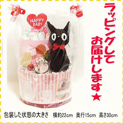 16023 おむつケーキ2段 女の子♪魔女の宅急便♪黒猫のジジぬいぐるみ
