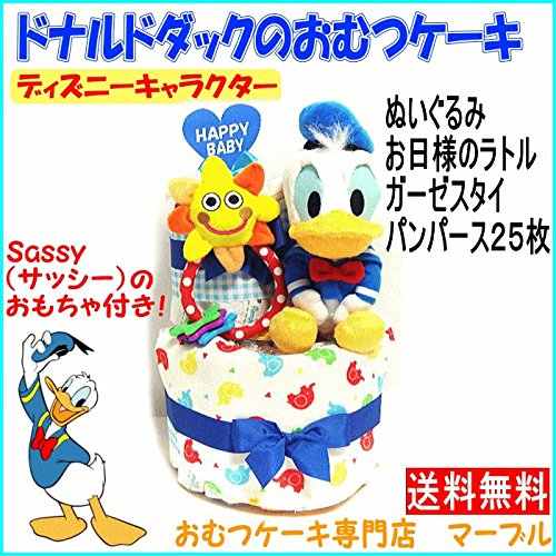 16033 おむつケーキ2段男の子 ディズニー ドナルドダック ぬいぐるみと知育玩具 オムツケーキ 出産祝い