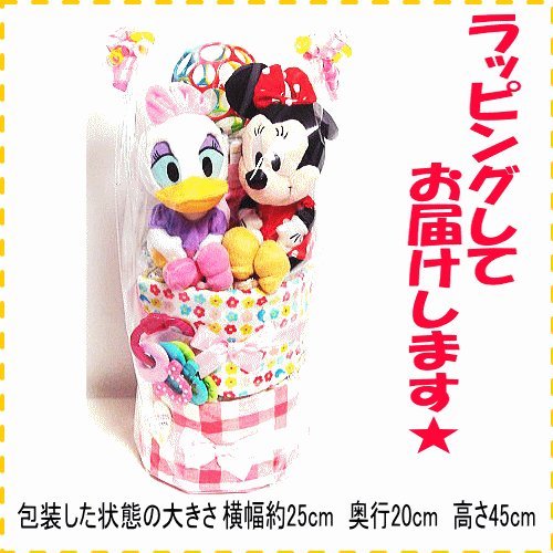 16059おむつケーキ3段女の子 ミニーマウス&デイジーダック 玩具セット 即納オムツケーキ キャラクター ディズニー ミニーマウス ミニーちゃん デイジーダック初節句 内祝い 誕生日 クリスマス 赤ちゃん ベビーギフト