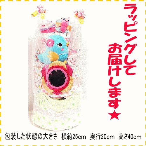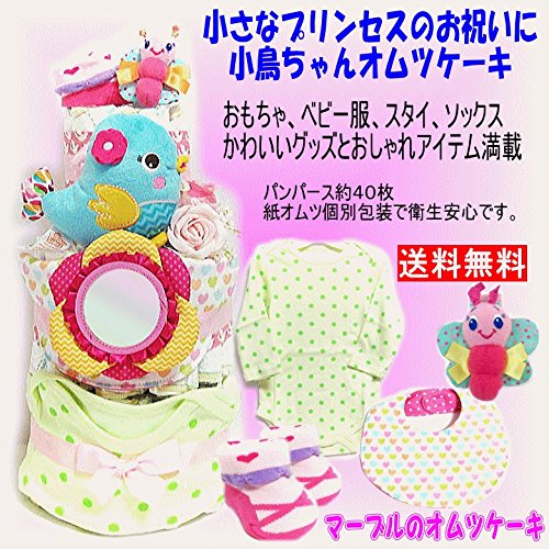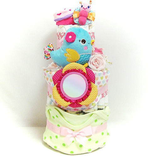16066 おむつケーキ3段 女の子 小鳥ちゃん 楽しいオモチャとベビー服 おしゃれグッズ[品番16066]即納オムツケーキ 知育玩具 ロンパース 初節句内祝い誕生日プレゼント 紙オムツ個別包装 パンパースS40枚 売れ筋