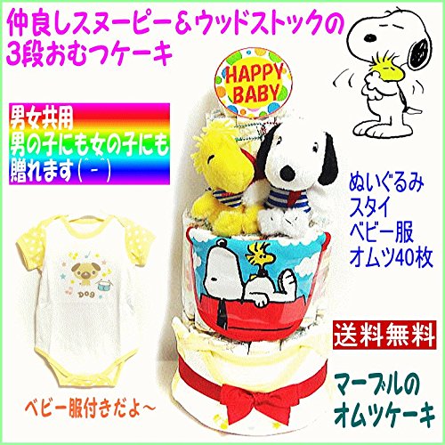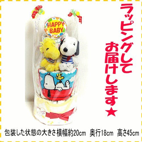 - オムツたっぷり♪送って喜ばれる3段のオムツケーキです!愛嬌たっぷりのスヌーピー、男の子にも女の子にも贈れるベビーギフトです★【セット内容】スヌーピーとウッドストックのマスコット、スタイ(スヌーピー柄)、半そでロンパース(仔犬の絵柄)80サイズ、パンパース約40枚。紙オムツは透明の袋で個別包装して衛生的です。