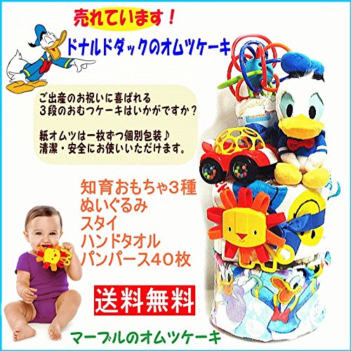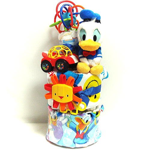 16041おむつケーキ3段男の子 ドナルドダック ブライトスターズ 知育おもちゃセット 即納オムツケーキ ディズニーキャラクター 知育玩具 出産祝い