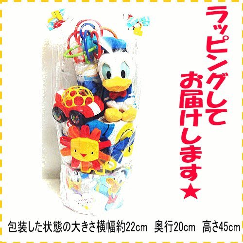 - 【セット内容】ぬいぐるみ、知育おもちゃ3種、ハンドタオル、スタイ、パンパースSサイズ(生後3-6か月位)約40枚。紙オムツは透明の袋で個別包装して衛生的です。