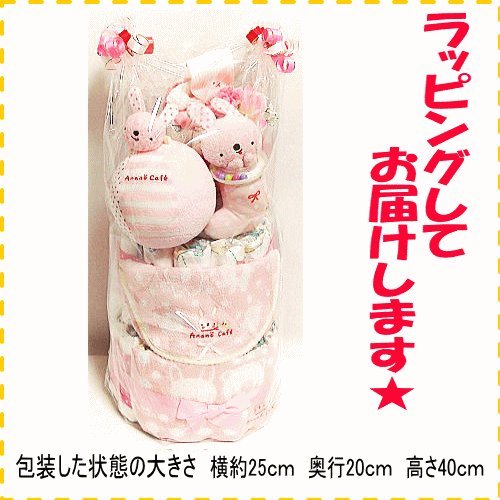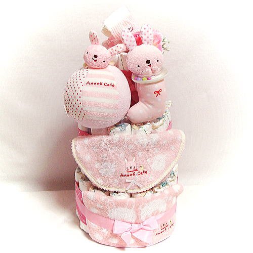 16001 おむつケーキ3段 女の子♪anano cafe♪日本製今治タオルのベビーギフトセット オムツケーキ 出産祝い