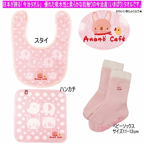 - 愛媛県今治産の高級タオルのベビーギフトセットです。ほっこり癒し系で人気のanano cafe(アナノカフェ)ブランド。【セット内容】スタイ、タオルハンカチ、ベビーソックス(いずれもウサギさんの刺繍入り)布製のボール、ウサギのにぎにぎ、パンパースSサイズ(生後3-6か月位)約25枚。紙オムツは透明の袋で個別包装して衛生的です。