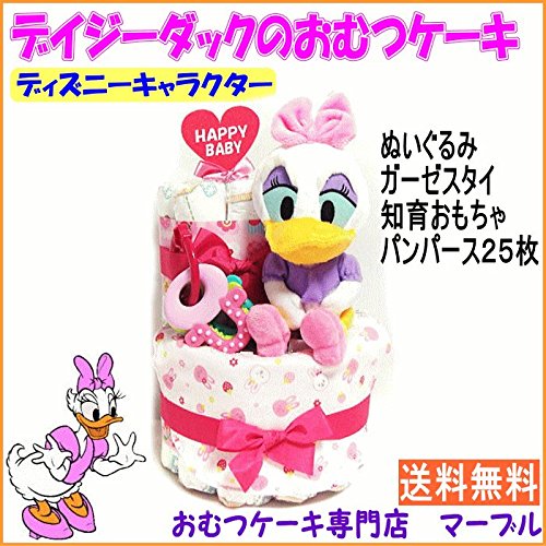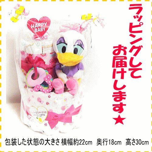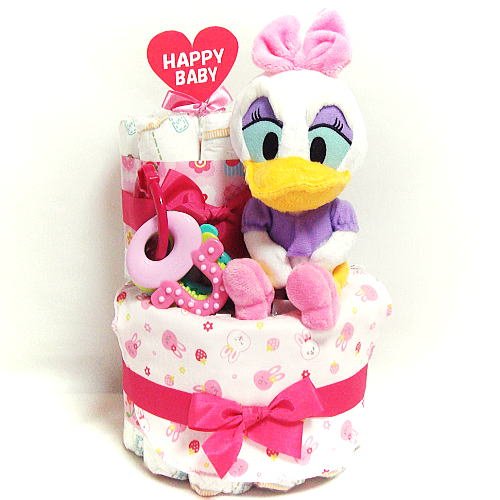 16043 おむつケーキ2段女の子 ディズニー デイジーダック ぬいぐるみ オムツケーキ 出産祝い
