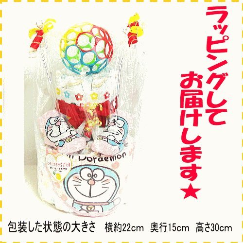- 【トッピング内容】スタイとベビーソックス・・・とても可愛いドラえもんのイラスト入りです。ソックスのサイズは7-10cmです。/オーボール・・・赤ちゃんの手にもつかみやすく、遊びやすい人気の玩具です。/パンパースSサイズ(生後3-6か月位)約25枚。紙オムツは透明の袋で個別包装して衛生的です。