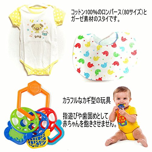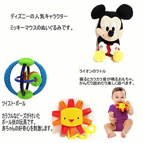 - 【セット内容】ミッキーマウスのぬいぐるみ、ベビー服(80サイズ)、スタイ、知育おもちゃ3種、パンパースSサイズ(生後3-6か月位)約40枚。紙オムツは透明の袋で個別包装して衛生的です。