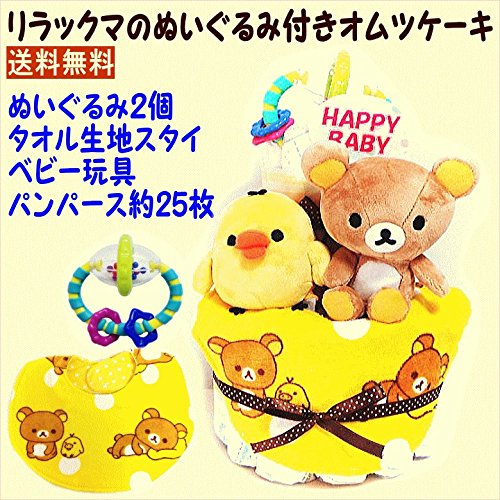 17011 おむつケーキ2段 男女共用 リラックマ&キイロイトリぬいぐるみ・スタイ キャラクターオムツケーキ サンリオ よだれかけ 知育玩具 男の子 女の子 パンパース