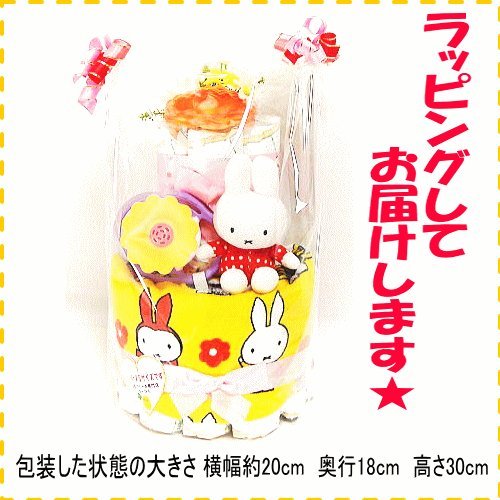 17013 おむつケーキ2段 女の子 ミッフィーマスコット&スタイ おもちゃ付き 絵本キャラクターオムツケーキ 出産祝い
