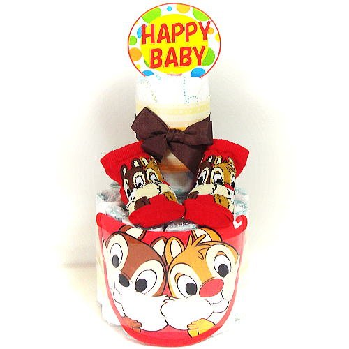 - 男の子にも、女の子にも贈れます♪【セット内容】チップとデールのスタイとベビーソックス、 紙オムツは透明の袋で個別包装して衛生的です。【使用枚数】パンパースSサイズ(生後3-6カ月用)約20枚