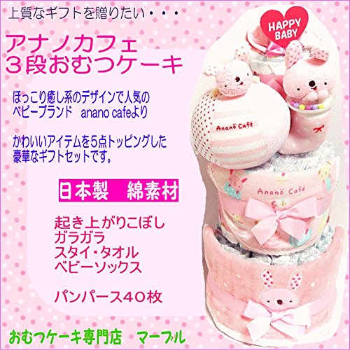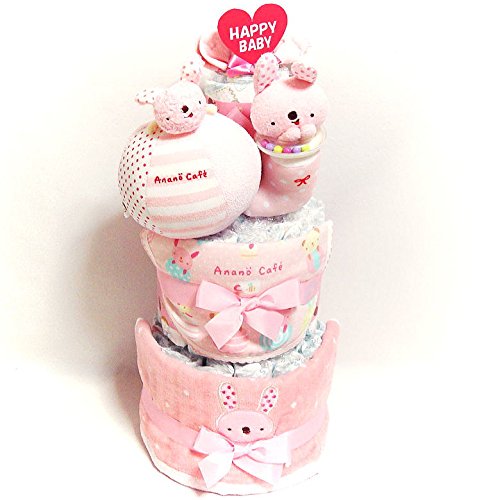 18011おむつケーキ3段 女の子 日本製綿素材ベビーギフト anano cafe(アナノカフェ)オムツケーキ