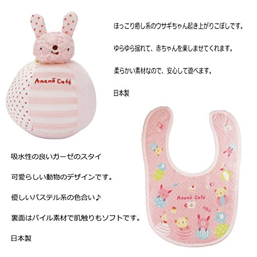 - 上質な品質と愛らしいデザインで人気のベビーブランド、アナノカフェのグッズをトッピングしました【セット内容】起き上がりこぼし、スタイ、ガラガラ、タオル、ベビーソックス(ガラガラ以外は日本製です。素材は全てコットンです)【紙オムツ使用枚数】パンパースSサイズ(生後3-6カ月用)約40枚紙オムツは透明の袋で個別包装して衛生的です。