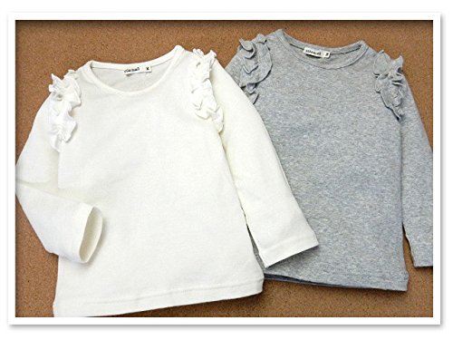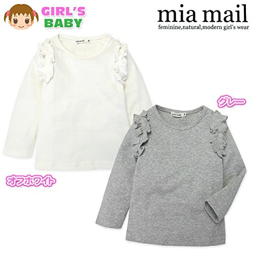 (グレー/95cm) ベビー服 女の子 Tシャツ 長袖 mia mail ミアメール フライス 肩フリル 女児 ベビー