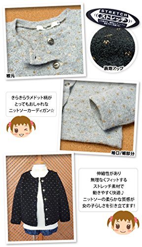 (グレー/90cm)ベビー服 女の子 アウター カーディガン 長袖 mia mail ミアメール ニットソー ストレッチ ラメドット柄 女児 ベビー