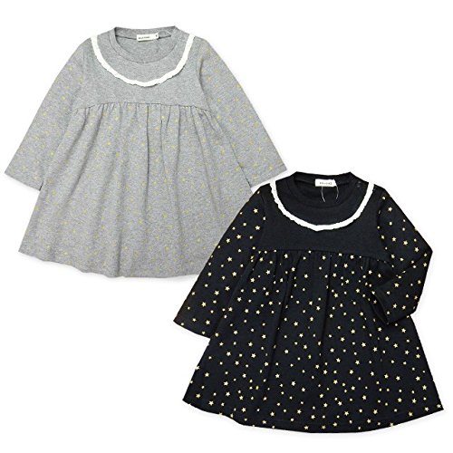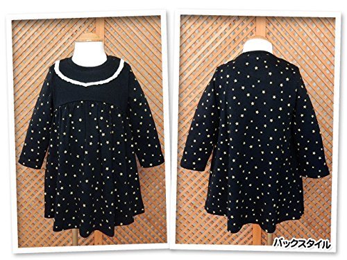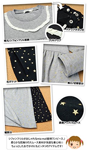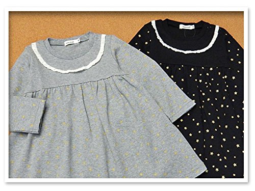 (ブラック/90cm)ベビー服 女の子 ワンピース 長袖 mia mail ミアメール 星柄 スムース素材 フリル スナップボタン 女児 ベビー