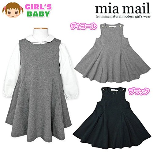 (チャコール/95cm)ベビー服 女の子 ジャンパースカート ジャンスカ mia mail ミアメール ポンチ素材 無地 フレア 女児 ベビー