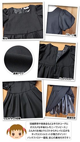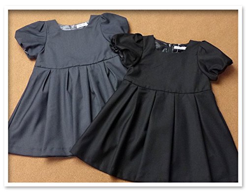 (チャコールグレー/90cm)ベビー服 女の子 セレモニー ワンピース 半袖 フォーマル 無地 バルーン袖 ウエストタック バックファスナー 女児 ベビー