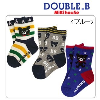 ミキハウス(mikihouse) ダブルB(DOUBLE_B) クルーソックスパック 3足セット 赤ちゃんやベビーキッズ用 64-9612-785 (17cm~19cm, ブルー)
