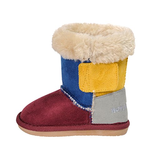 今年もファー付きブーツが登場しました!!外側に面ファスナーが付いて、脱ぎ履きする時もラクチン。ファーはなんと足の先まで敷きつめてあって、あったかふわふわなんですよ!靴底はギザギザが付いて、滑りにくい仕様になっています。柔らかく軽量に仕上げていますので、街でもおしゃれに履いていただけます。かかとのロゴ刺しゅうでさりげなくアピールできちゃいますよ。あったかコーディネートにはかかせないアイテム。寒くなる季節には絶対ほしくなっちゃいますね! ※面ファスナーとは、マジックテープのことです。(「マジックテープ」は(株)クラレの登録商標です。) ●2Eラスト設計●素材:合成皮革●品質:(甲皮の使用材)合成皮革(底材の種類)合成底●生産国:中国