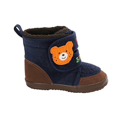 お子様の足を優しくあたたかく包み込む、ベビーウインターブーツです!フロント部分はふわふわとやわらかいボア素材、足の当たる履き口と、ベロの裏側にはあたたかなボアが付いていてお子様の足をやさしく包んでくれます!フィット感を調整しやすいよう、ふたつのフロントベルトが付いていて履き口が大きく開くようになっているので、脱ぎ履きも楽々です。さらに踏み返しが容易にでき正しい位置で屈曲し、歩き易いフレックスソール設計になっています。また、かかと部分もしっかりカウンターでお子様の足を守ります。靴底はスニーカーのようなおつくりで、小さなお子様でも歩きやすい!お子様の足のことを考えた機能もしっかり兼ね備えていますよ。お顔の編みワッペンが最高にキュート!!可愛いブーツで、寒いときのお出かけも楽しくなりそうですね! ●セカンドシューズ仕様●フレックスソール●しっかりカウンター●2Eラスト設計●素材:ポリエステル起毛,シープボア●生産国:中国