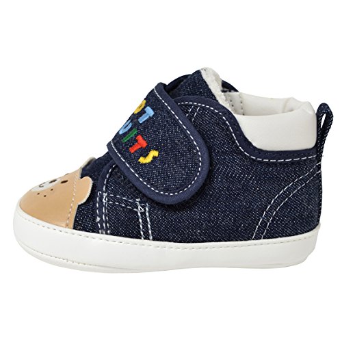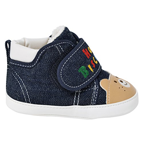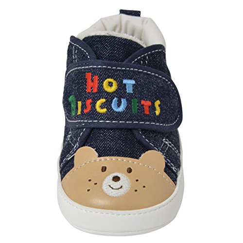 ホットビからフロントにビーンズくんとキャビットちゃんのお顔が付いたとってもキュートなプレシューズ! たっちをし始める赤ちゃんには、歩く練習を快適に始められ、靴に慣れる機能を備えたプレシューズが最適。 未発達でデリケートな足に優しい、安定感のあるはき易い仕様です。 たっちやよちよち歩きの練習に◎ 面ファスナーで大きく開いて着脱できるので、履かせやすくて便利。 カラフルな「HOT BISCUITS」のロゴ刺繍がポイント。 生まれて初めてふれるシューズ ご出産のお祝いにもオススメです。 ※面ファスナーとは、マジックテープのことです。(「マジックテープ」は(株)クラレの登録商標です。) ●素材:(ピンク)オックス(インディゴブルー)8オンスデニム ●品質:(皮革部分)合成皮革(底材の種類)合成皮革 ●生産国:MADE IN JAPAN