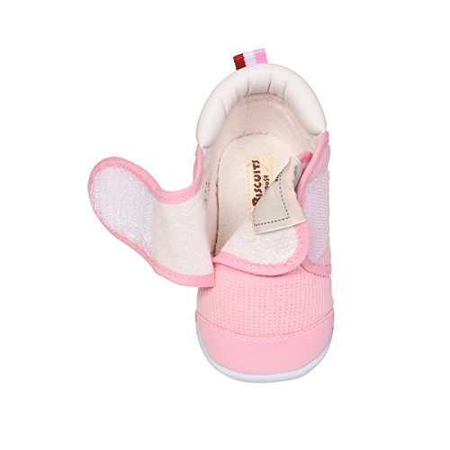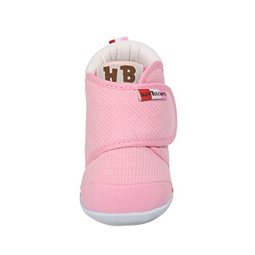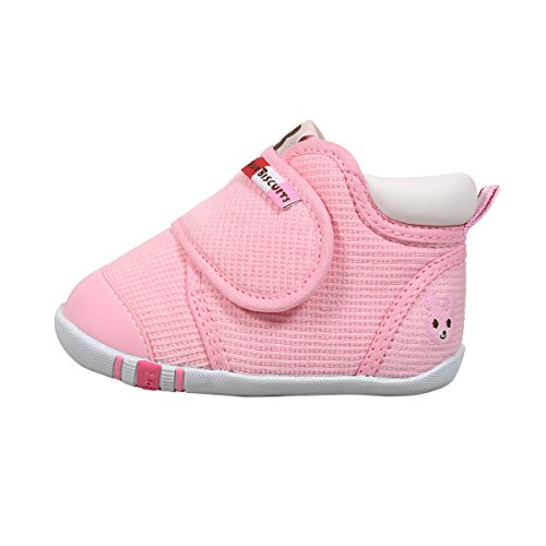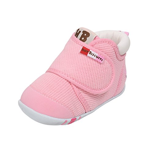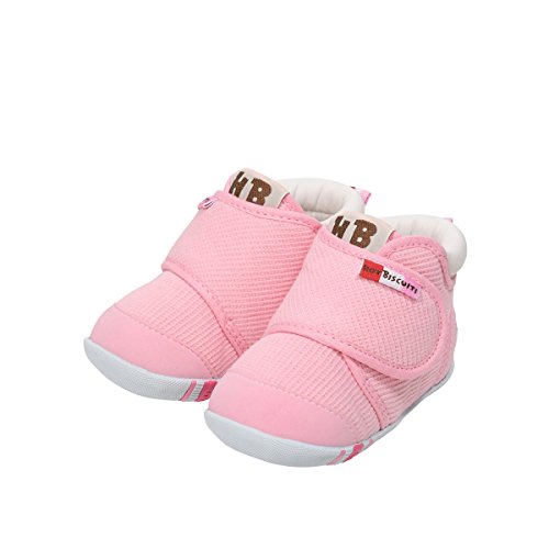 よちよち、あんよを始めた頃からの赤ちゃんの正しい歩行を しっかりとサポートするファーストベビーシューズです。 つま先が少しあがっているので、歩き始めの赤ちゃんも歩きやすく たっちやあんよの練習にお使いいただけます。 素材は細かなワッフル地のようなタックピケを使用。 面ファスナーで甲ベルトが開いて、履かせやすくなっています。 甲ベルトには「HOT BISCUITS」のカラフルなブランドタグ付き。 かかとにはビーンズくんとキャビットちゃんのポイント刺繍入りです。 赤ちゃんの成長は早いもの。 3ヶ月程度を目安にこまめに足のサイズを測ることを心がけ 常に最適なサイズの靴を選んであげてくださいね。 小さな赤ちゃんのあんよを優しく包みこむベビーシューズ。 ご出産のお祝いとしても喜ばれますよ。 ※面ファスナーとは、マジックテープのことです。(「マジックテープ」は(株)クラレの登録商標です。) ●ファーストシューズ仕様 ●フレックスソール ●2Eラスト設計 ●しっかりカウンター