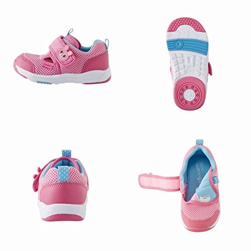 キッズの夏定番!!サマーメッシュシューズです 大人気のダブルラッセル素材は、柔らかで軽やかで夏にピッタリ!! 通気性がよく、濡れても乾くのが早いので、裸足でサンダル感覚で履いていただけます。 甲ベルトにはビーンズくんとキャビットちゃんのポイント付き。 面ファスナーで調整出来て、履き口が大きくひろがるので、脱ぎ履きしやすいですよ 涼しげなメッシュシューズは、夏のアウトドアスタイルに便利 カッコイイ仕上りのスポーティシューズなので、タウンにもデイリーにも大活躍 元気なお子さまの足元のアクセントにもお勧めですよ!! 面ファスナーとは、マジックテープのことです。(「マジックテープ」は(株)クラレの登録商標です。) フレックスソール しっかりカウンター 2Eラスト設計