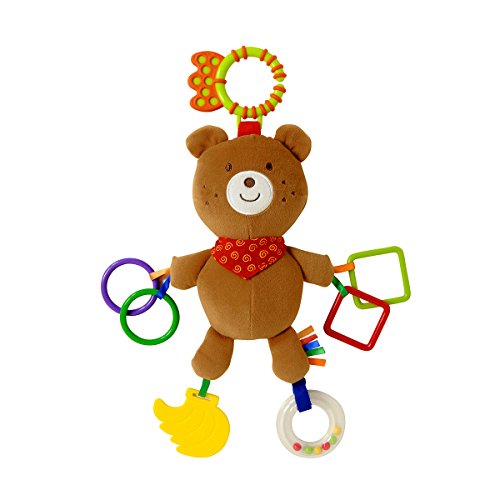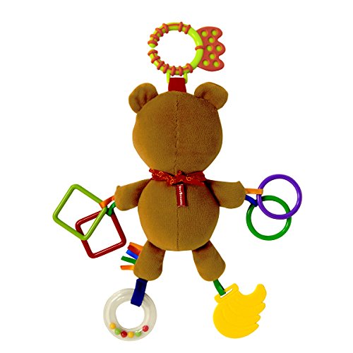 ビーンズくんのベビーカートイ。便利なリングが付いて、ベビーカーやベビーベッドに簡単に取り付けられます。ビーンズくんの手足には色とりどりのアクセサリー!異なる感触がお子様の視覚・触覚・音感を刺激します!プレゼントにもどうぞ! 【使用上の注意】●最初のご使用前にはプラスチック部分を軽くから拭きしてください。●ベビーベッドやベビーカーの形状によっては取り付けできない場合もございます。●不安定な取り付けでのご使用はお避けください。●お子さまがリングをなめたり、噛んだりしないようご注意ください。唇がはさまりケガをするおそれがあります。 【お手入れ方法】●汚れた場合は、水を含ませてかたくしぼった布で拭いてください。●水洗いはお避けください。●煮沸消毒、電子レンジ消毒、薬液消毒はおやめください。 ●対象年齢:0ヶ月以上●全長約38cm ぬいぐるみの大きさ約23cm●素材(本体)ポリエステル起毛(樹脂部分)ポリプロピレン、EVA、ABS樹脂、ポリエチレン●品質(生地)ポリエステル・ポリエステル/綿(パーツ)ABS・PP・PS・EVA・TPE●生産国:中国
