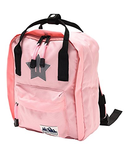 持ち手のついたリュック。お子様が自分でつけ外しが出来るようにチェストストラップはマジックテープです。中にはお名前ネーム付き。