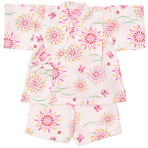 爽やかな白地に鮮やかな花火のプリントが入った甚平スーツ! キャビットちゃんのお顔もプリントされていて、ホットビならではの可愛さ! 部分的に収縮させているリップル素材は、シワも気にならず肌触りも涼しげ! 夏らしいポコポコした素材感が肌に密着せず、通気性にも優れているので、 お部屋着やお風呂あがりにも、さらっと気持ちよく着られます。 パンツのウエストは総ゴムで、はき易くて便利です。 日本ならではの夏の風物詩がプリントされていて和みますね! 花火大会や夕涼み…夏のイベントにも大活躍しますね! こちらの甚平はネットに入れて洗濯機の弱水流で洗濯できます! 洗濯時には洗濯ネーム表示をご参照ください。 ・お洗濯の際、製品を裏返しにしてください。 ・型くずれや他のものへの引っ掛かりを防ぐため、ネットをご使用ください。 ・長い時間濡れたままにしておくと色落ちしたり、色移りすることがありますのでご注意ください。 ・洗濯後は形を整えてすぐ干してください。 ・きなり、淡色の製品は無蛍光洗剤をご使用ください。 また濃い色の製品とは分けて洗濯してください。 ・素材の特性上、洗濯等により多少縮むことがあります。