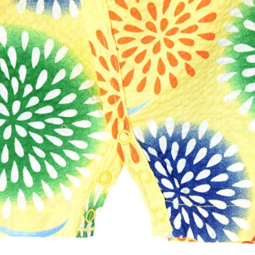 鮮やかな花火のプリントが入った甚平オールです! ビーンズくんのお顔もプリントされていて、ホットビならではの可愛さ! 部分的に収縮させているリップル素材は、シワも気にならず肌触りも涼しげ! 夏らしいポコポコした素材感が肌に密着せず、通気性にも優れているので、 お部屋着やお風呂あがりにもさらっと気持ちよく着られます。 股部分はホックボタンで開くので、オムツ替えもささっと楽に出来ますよ。 ショートオールのように上下がつなぎになっているから、1枚着せるだけでママもらくちん! 抱っこやハイハイでも、お腹が出る心配がありませんね! 日本ならではの夏の風物詩がプリントされていて和みますね! 花火大会や夕涼み…夏のイベントデビューに大活躍して下さいね!