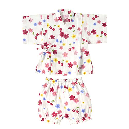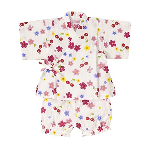 キャビットちゃんに チェリーとさくら柄がモチーフになった甚平スーツです! 素材は肌ざわりが気持ちいい二重織ガーゼを使用。 お子さまのデリケートなお肌を優しく包みます。 通気性・吸水速乾性にも優れているので、夏場でも涼しく お部屋着やお風呂あがりにも、さらっと気持ちよく着られますよ。 パンツのウエストゴムはゴム替えホール付き。 花火大会や夕涼み…夏のイベントデビューに大活躍させて下さいね! こちらの甚平はネットに入れて洗濯機の弱水流で洗濯できます! 洗濯時には洗濯ネーム表示をご参照ください。 ・お洗濯の際、製品を裏返しにしてください。 ・型くずれや他のものへの引っ掛かりを防ぐため、ネットをご使用ください。 ・長い時間濡れたままにしておくと色落ちしたり、色移りすることがありますのでご注意ください。 ・洗濯後は形を整えてすぐ干してください。 ・きなり、淡色の製品は無蛍光洗剤をご使用ください。 また濃い色の製品とは分けて洗濯してください。 ・素材の特性上、洗濯等により多少縮むことがあります。
