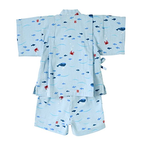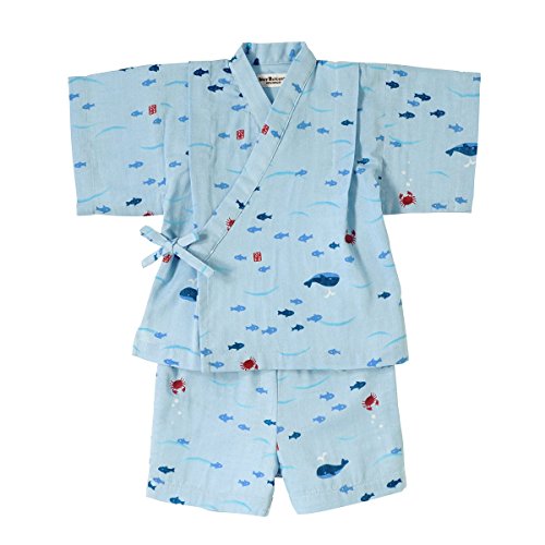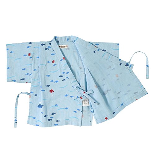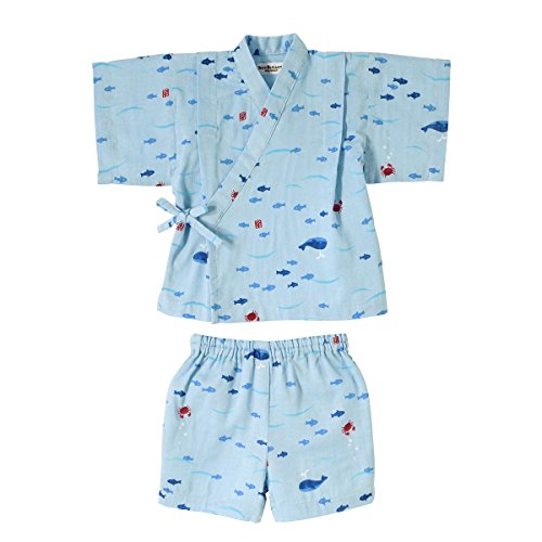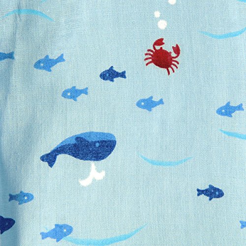 おサカナさんにカニさん! 海の仲間たちがモチーフになった甚平スーツです! 素材は肌ざわりが気持ちいい二重織ガーゼを使用。 お子さまのデリケートなお肌を優しく包みます。 通気性・吸水速乾性にも優れているので、夏場でも涼しく お部屋着やお風呂あがりにも、さらっと気持ちよく着られますよ。 パンツのウエストゴムはゴム替えホール付き。 夏らしい涼しげなモチーフがプリントされていて和みますね! 花火大会や夕涼み…夏のイベントデビューに大活躍させて下さいね! こちらの甚平はネットに入れて洗濯機の弱水流で洗濯できます! 洗濯時には洗濯ネーム表示をご参照ください。 ・お洗濯の際、製品を裏返しにしてください。 ・型くずれや他のものへの引っ掛かりを防ぐため、ネットをご使用ください。 ・長い時間濡れたままにしておくと色落ちしたり、色移りすることがありますのでご注意ください。 ・洗濯後は形を整えてすぐ干してください。 ・きなり、淡色の製品は無蛍光洗剤をご使用ください。 また濃い色の製品とは分けて洗濯してください。 ・素材の特性上、洗濯等により多少縮むことがあります。