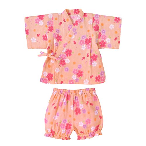 桜模様に金魚が浮かぶ涼しげなモチーフの甚平スーツです! 素材は肌ざわりが気持ちいい二重織ガーゼを使用。 お子さまのデリケートなお肌を優しく包みます。 通気性・吸水速乾性にも優れているので、夏場でも涼しく お部屋着やお風呂あがりにも、さらっと気持ちよく着られますよ。 パンツのウエストゴムはゴム替えホール付き。 裾にゴムを入れたかぼちゃパンツ風のデザインが可愛いですよ! 花火大会や夕涼み…夏のイベントデビューに大活躍させて下さいね! こちらの甚平はネットに入れて洗濯機の弱水流で洗濯できます! 洗濯時には洗濯ネーム表示をご参照ください。 ・お洗濯の際、製品を裏返しにしてください。 ・型くずれや他のものへの引っ掛かりを防ぐため、ネットをご使用ください。 ・長い時間濡れたままにしておくと色落ちしたり、色移りすることがありますのでご注意ください。 ・洗濯後は形を整えてすぐ干してください。 ・きなり、淡色の製品は無蛍光洗剤をご使用ください。 また濃い色の製品とは分けて洗濯してください。 ・素材の特性上、洗濯等により多少縮むことがあります。