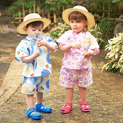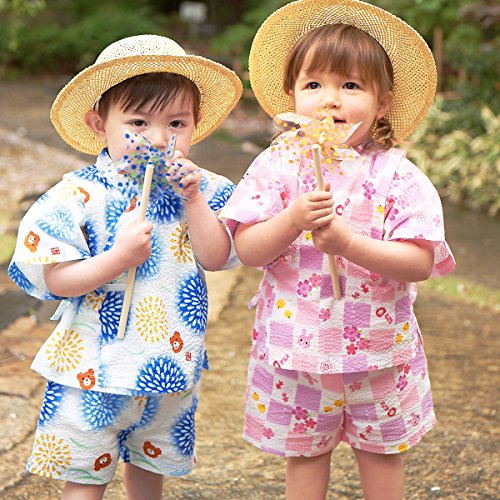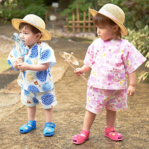 鮮やかな花火のプリントが入った甚平スーツです! ビーンズくんのお顔もプリントされていて、ホットビならではの可愛さ! 部分的に収縮させているリップル素材は、シワも気にならず肌触りも涼しげ! 夏らしいポコポコした素材感が肌に密着せず、通気性にも優れているので、 お部屋着やお風呂あがりにもさらっと気持ちよく着られます。 パンツのウエストゴムはゴム替えホール付き。 日本ならではの夏の風物詩がプリントされていて和みますね! 花火大会や夕涼み…夏のイベントデビューに大活躍して下さい! こちらの甚平はネットに入れて洗濯機の弱水流で洗濯できます! 洗濯時には洗濯ネーム表示をご参照ください。 ・お洗濯の際、製品を裏返しにしてください。 ・型くずれや他のものへの引っ掛かりを防ぐため、ネットをご使用ください。 ・長い時間濡れたままにしておくと色落ちしたり、色移りすることがありますのでご注意ください。 ・洗濯後は形を整えてすぐ干してください。 ・きなり、淡色の製品は無蛍光洗剤をご使用ください。 また濃い色の製品とは分けて洗濯してください。 ・素材の特性上、洗濯等により多少縮むことがあります。