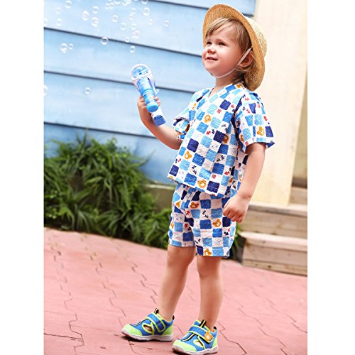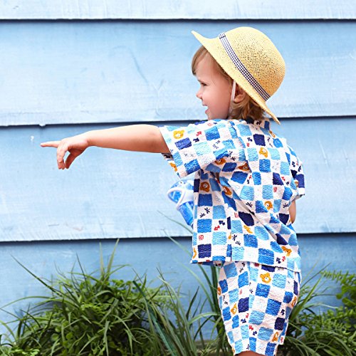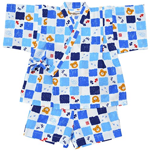 白地にブルーの市松柄が爽やかな甚平スーツです! 夏の風物詩にビーンズくんのお顔がプリントされていて、ホットビならではの可愛さ! 部分的に収縮させているリップル素材は、シワも気にならず肌触りも涼しげ! 夏らしいポコポコした素材感が肌に密着せず、通気性にも優れているので、 お部屋着やお風呂あがりにも、さらっと気持ちよく着られます。 パンツのウエストゴムはゴム替えホール付き。 とっても着やすく思う存分動き回れるので、きっと子供たちも大喜び!! 独特のフワフワした肌触りも楽しめますよ! 夏のおでかけも可愛いビーンズくんと一緒! 花火大会や夕涼み…夏のイベントデビューに大活躍して下さいね! こちらの甚平はネットに入れて洗濯機の弱水流で洗濯できます! 洗濯時には洗濯ネーム表示をご参照ください。 ・お洗濯の際、製品を裏返しにしてください。 ・型くずれや他のものへの引っ掛かりを防ぐため、ネットをご使用ください。 ・長い時間濡れたままにしておくと色落ちしたり、色移りすることがありますのでご注意ください。 ・洗濯後は形を整えてすぐ干してください。 ・きなり、淡色の製品は無蛍光洗剤をご使用ください。 また濃い色の製品とは分けて洗濯してください。 ・素材の特性上、洗濯等により多少縮むことがあります。