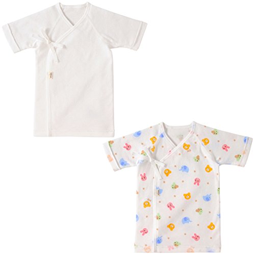 ふんわり優しいフライス素材の無地短肌着とキャラクターたちが総柄になった短肌着との2枚セットです。一年中、快適に着用できます。やわらかくぬくもりのある風合いで、吸水性・耐久性に優れた天然コットン100%使用した、優しい肌ざわりの肌着。赤ちゃんがはじめて身につけるものだから、安心・安全を追及した日本製。デリケートな赤ちゃんの肌に直接触れないよう、縫い目やタグをすべて表側に出しています。脇の縫い目をなくし、肌あたりがよく、伸縮性が高いので、動きを妨げにくい仕立てです。お腹部分を冷やさず、はだけにくいよう、うちあわせを深くしました。成長に合わせて調節が可能です。短肌着は汗取りのための肌着です。短肌着は上にコンビ肌着を重ねて着るのが基本です。暑い時期は、短肌着だけでOK!●フライス ~ふんわりやさしい通年素材~肌触りのよいメリヤス地。フィット感がよく伸縮性や通気性に優れています。柔らかな風合いの定番素材。●素材:フライス/フライスプリント●品質:綿100%●生産国:日本