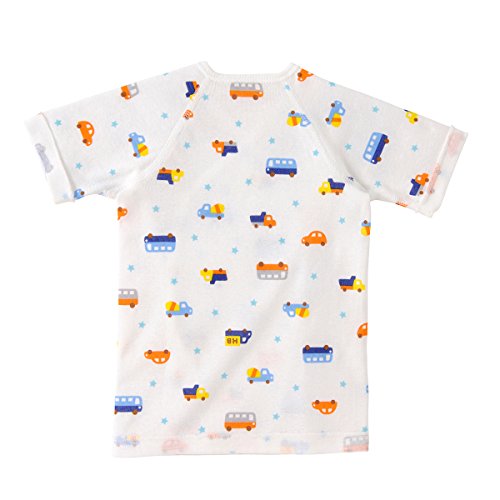 ふんわり優しいフライス素材の無地短肌着とキャラクターたちが総柄になった短肌着との2枚セットです。一年中、快適に着用できます。やわらかくぬくもりのある風合いで、吸水性・耐久性に優れた天然コットン100%使用した、優しい肌ざわりの肌着。赤ちゃんがはじめて身につけるものだから、安心・安全を追及した日本製。デリケートな赤ちゃんの肌に直接触れないよう、縫い目やタグをすべて表側に出しています。脇の縫い目をなくし、肌あたりがよく、伸縮性が高いので、動きを妨げにくい仕立てです。お腹部分を冷やさず、はだけにくいよう、うちあわせを深くしました。成長に合わせて調節が可能です。短肌着は汗取りのための肌着です。短肌着は上にコンビ肌着を重ねて着るのが基本です。暑い時期は、短肌着だけでOK!●フライス ~ふんわりやさしい通年素材~肌触りのよいメリヤス地。フィット感がよく伸縮性や通気性に優れています。柔らかな風合いの定番素材。●素材:フライス/フライスプリント●品質:綿100%●生産国:日本