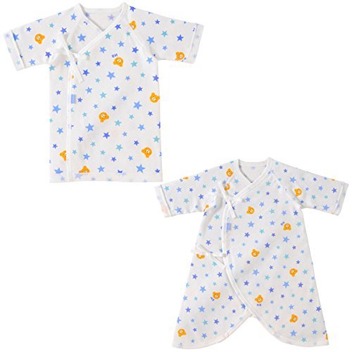 総柄プリントのふんわり優しいフライス素材の短肌着とコンビ肌着の1枚ずつのセット。一年中、快適に着用できる通年素材。やわらかくぬくもりのある風合いで、吸水性・耐久性に優れた天然コットン100%使用した、優しい肌ざわりの肌着。赤ちゃんがはじめて身につけるものだから、安心・安全を追及した日本製。短肌着は汗取りのための肌着で、コンビ肌着は保温のための肌着です。短肌着に重ねて使います。足までスッポリ包んでくれて、お腹をしっかりガードしてくれます。赤ちゃんのM型の足に合わせて、まとわりつかない裾広がりのシルエットです。股ホックが付いているので足の動きが活発になってもはだけません。デリケートな赤ちゃんの肌に直接触れないよう、縫い目やタグをすべて表側に出しています。脇の縫い目をなくし、肌あたりがよく、伸縮性が高いので、動きを妨げにくい仕立てです。お腹部分を冷やさず、はだけにくいよう、うちあわせを深くしました。 ●フライス ~ふんわりやさしい通年素材~肌触りのよいメリヤス地。フィット感がよく伸縮性や通気性に優れています。柔らかな風合いの定番素材。 ●素材:フライスプリント●品質:綿100%●生産国:日本
