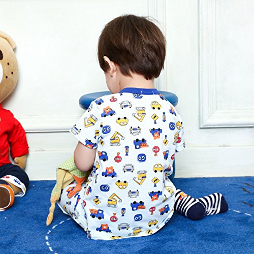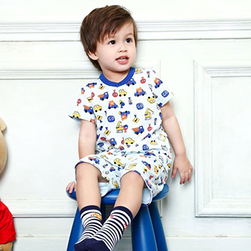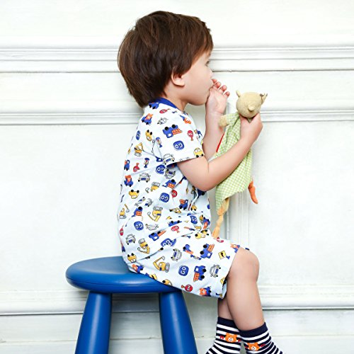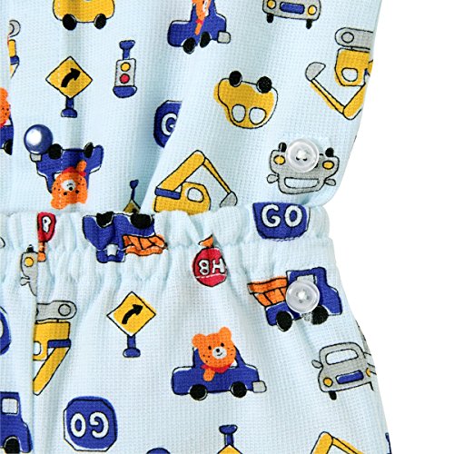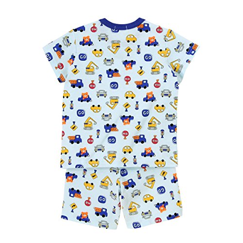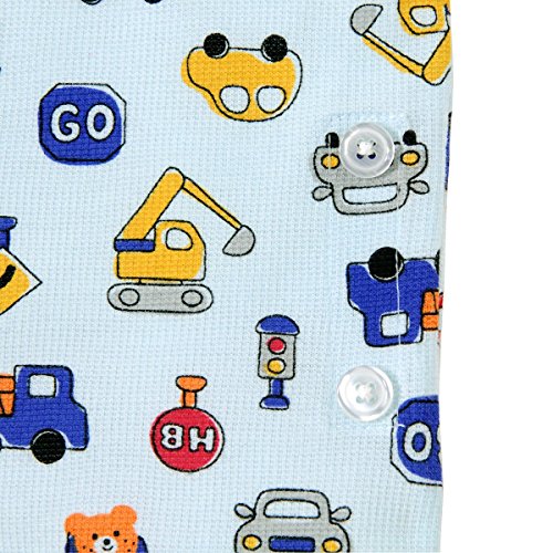 車に乗ってドライブを楽しむビーンズくんと働く車がいっぱい! 夏向き素材の可愛い総柄プリント半袖パジャマです! しかもパンツは6分丈なので、さらに涼しげで軽やか! ちょっとゆったりサイズでも、ちょうどよく着ていただけますよ! 前開きでスナップボタンで着脱できます。 サイドには上衣とパンツを留められる調節用のボタン付き。 これで寝ていてもお腹がでちゃう心配ナシですね! お生地はさらっとした細かな織り柄のワッフル素材で着心地も満点!! 可愛いプリントで楽しい夢がみられそうですね! ●6分丈パンツ (適正サイズで着用の場合、 ひざが隠れるくらいの長さになります) ●上衣とパンツを留めるボタン付き:80-110cm