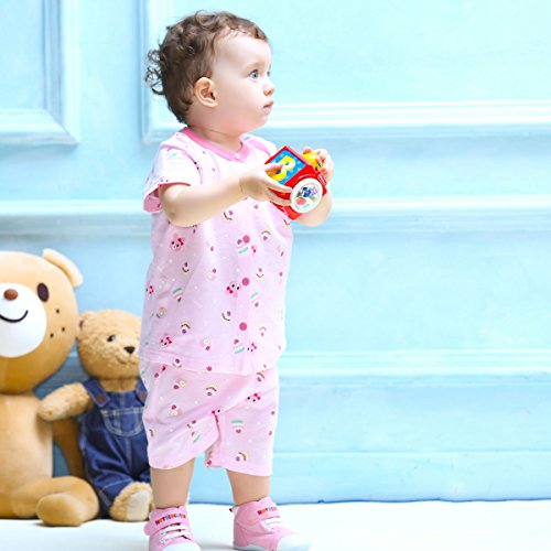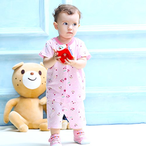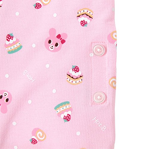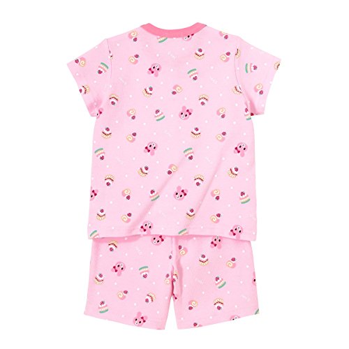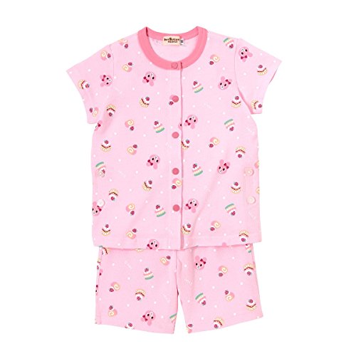 キャビットちゃんに美味しそうなスイーツがいっぱい! 夏向き素材の可愛い総柄プリント半袖パジャマです! しかもパンツは6分丈なので、さらに涼しげで軽やか! ちょっとゆったりサイズでも、ちょうどよく着ていただけますよ! 前開きでスナップボタンで着脱できます。 サイドには上衣とパンツを留められる調節用のボタン付き。 これで寝ていてもお腹がでちゃう心配ナシですね! お生地はさらっとした細かな織り柄のワッフル素材で着心地も満点!! 可愛いプリントでラブリーな夢がみられそうですね! ●6分丈パンツ (適正サイズで着用の場合、 ひざが隠れるくらいの長さになります) ●上衣とパンツを留めるボタン付き:80-110cm