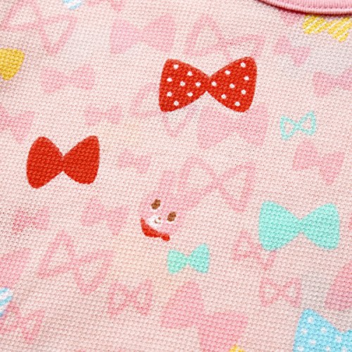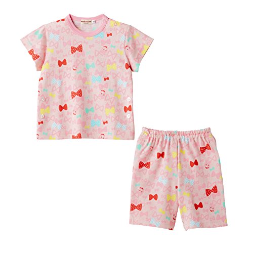 たくさんの可愛いリボンに囲まれたキャビットちゃん 夢のあるモチーフがプリントされた、夏向き素材の半袖パジャマです しかもパンツは6分丈なので、さらに涼しげで軽やか ちょっとゆったりサイズでも、ちょうどよく着ていただけますよ サイドには上衣とパンツを留められる調節用のボタン付き。 これで寝ていてもお腹がでちゃう心配ナシですね 生地はさらっとした細かな織り柄のワッフル素材で着心地も満点! キャビットちゃんと一緒の楽しい夢がみられそうですね